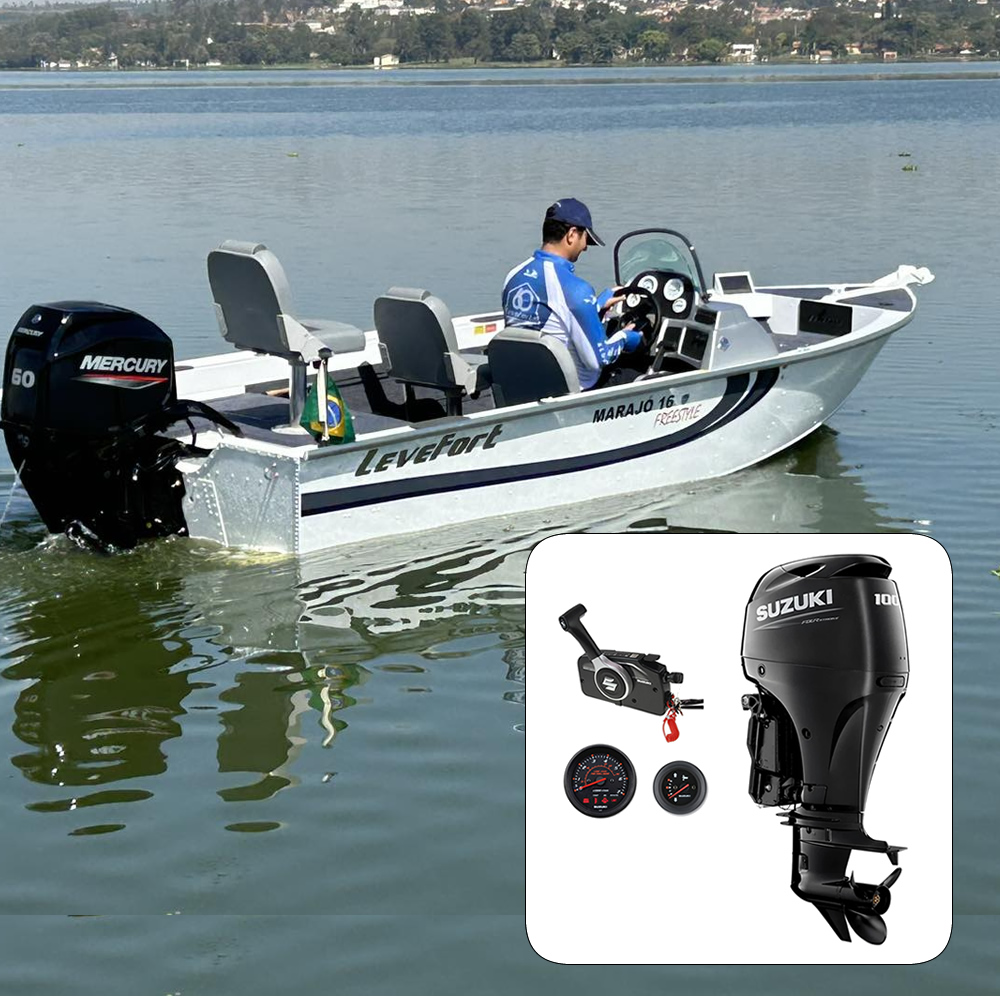 Barco Levefort Marajó 16 Freestyle Special Series + Suzuki 100 HP 4T Fat. PJ + Carreta Rodoviária+ Acessórios de montagem