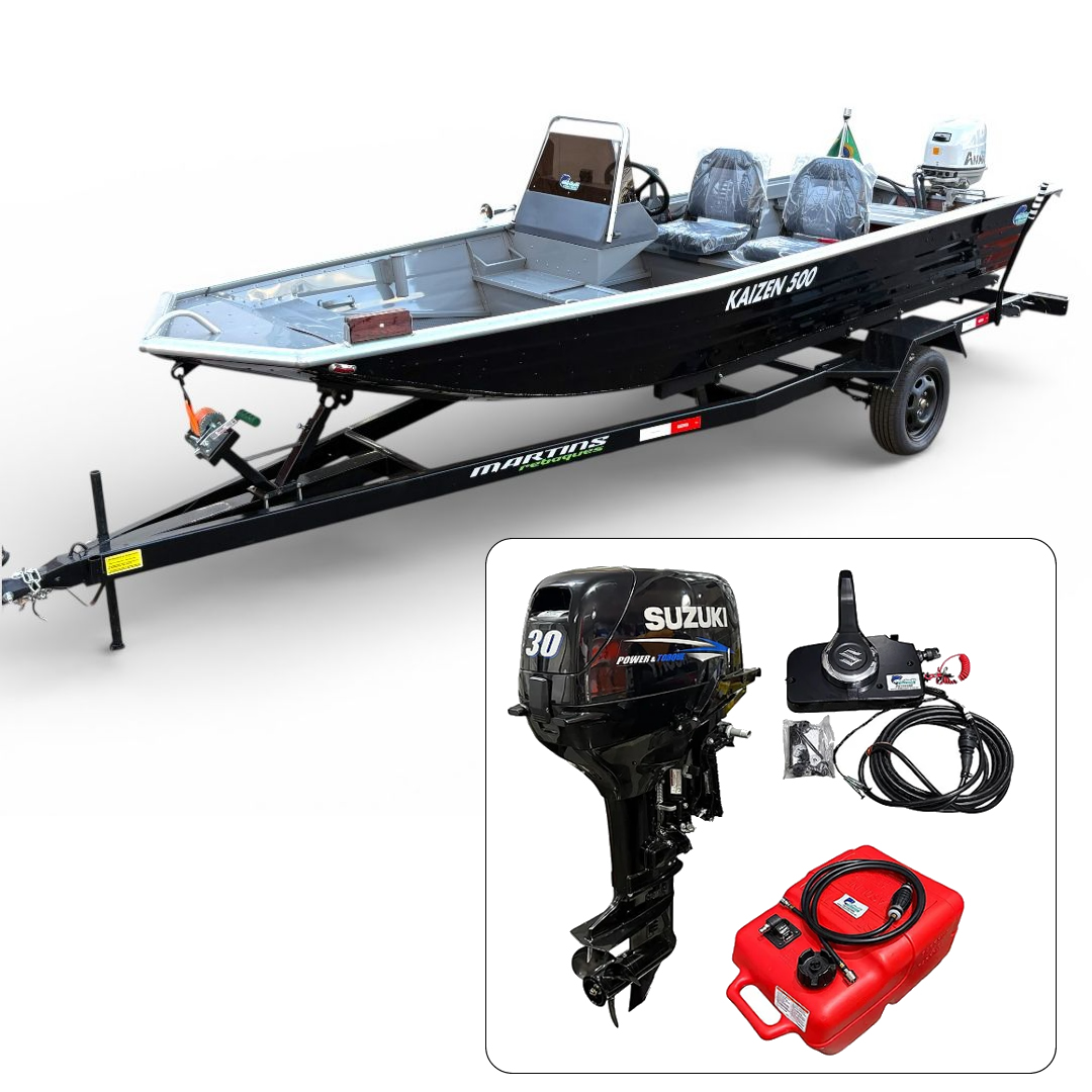 Barco Martinelli Kaisen 500 DC com motor Suzuki 30 HP 2T Part. Elétrica + Carreta Rodoviária - Preço do motor para PJ