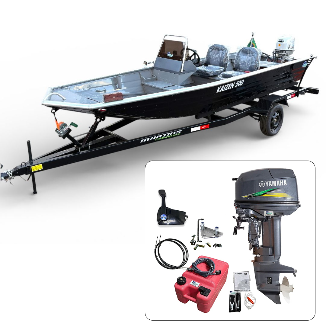 Barco Martinelli Kaisen 500 DC com motor Yamaha 30 HP 2T Part. Elétrica + Carreta Rodoviária - Preço do motor para PJ ou Produtor Rural